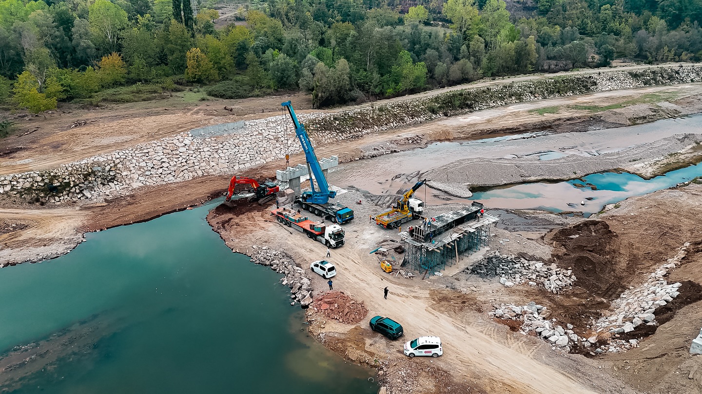 Belediyemiz tarafından hem gönülleri hem de mahalleleri birleştirme vizyonu ile yapımına başlanan köprünün yapımında sona yaklaşılıyor. Alt yapısı tamamlanan projede, köprünün ana taşıyıcı sistemleri inşa ediliyor.
