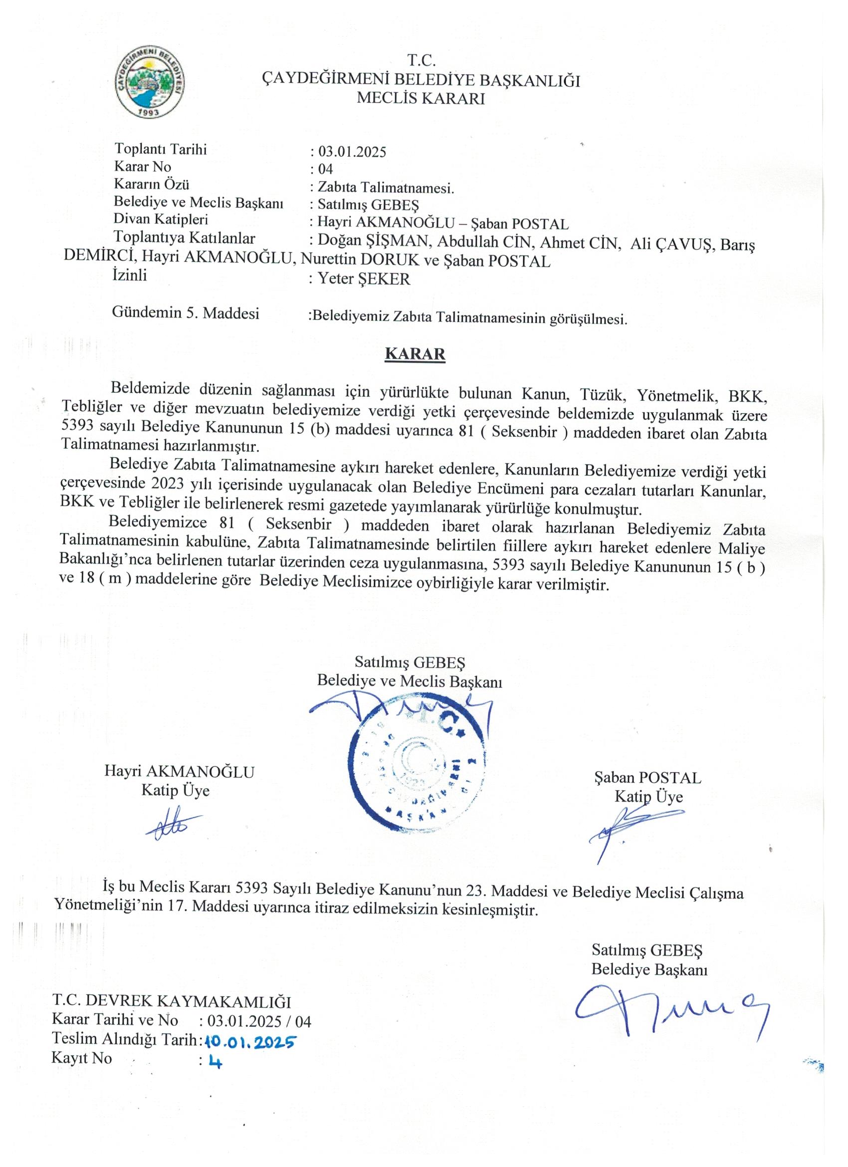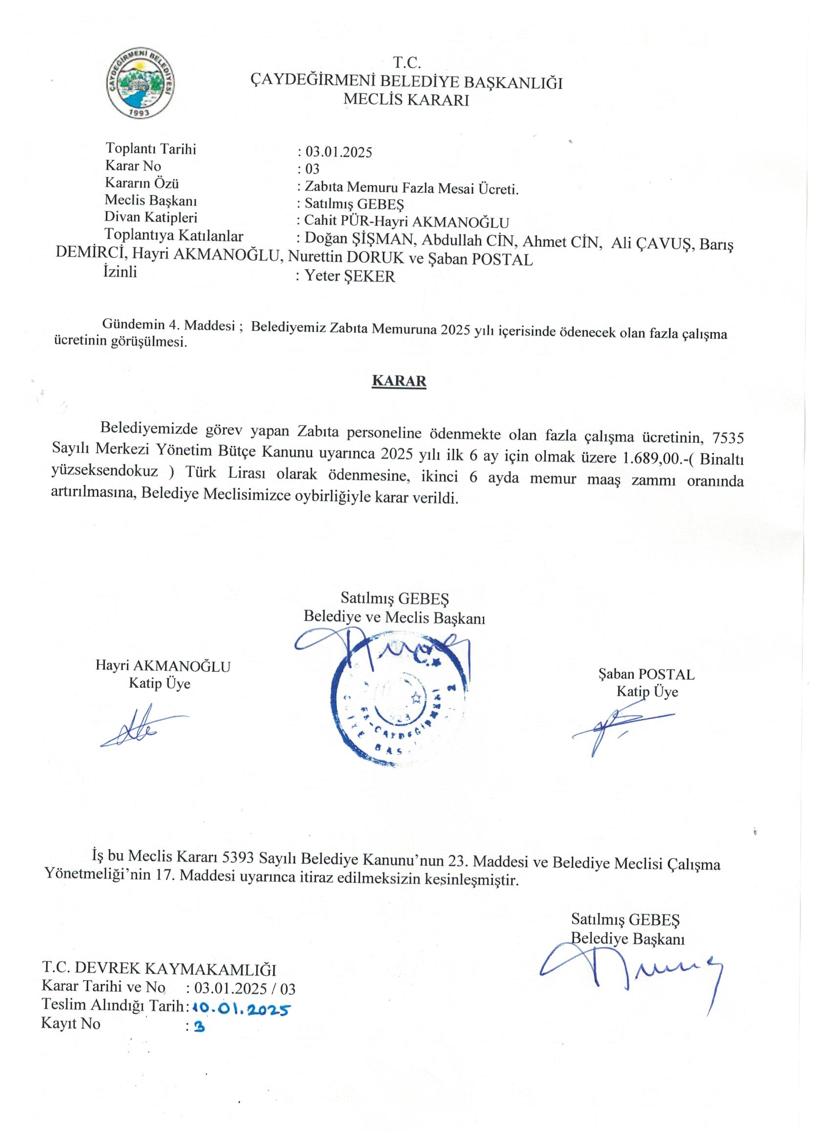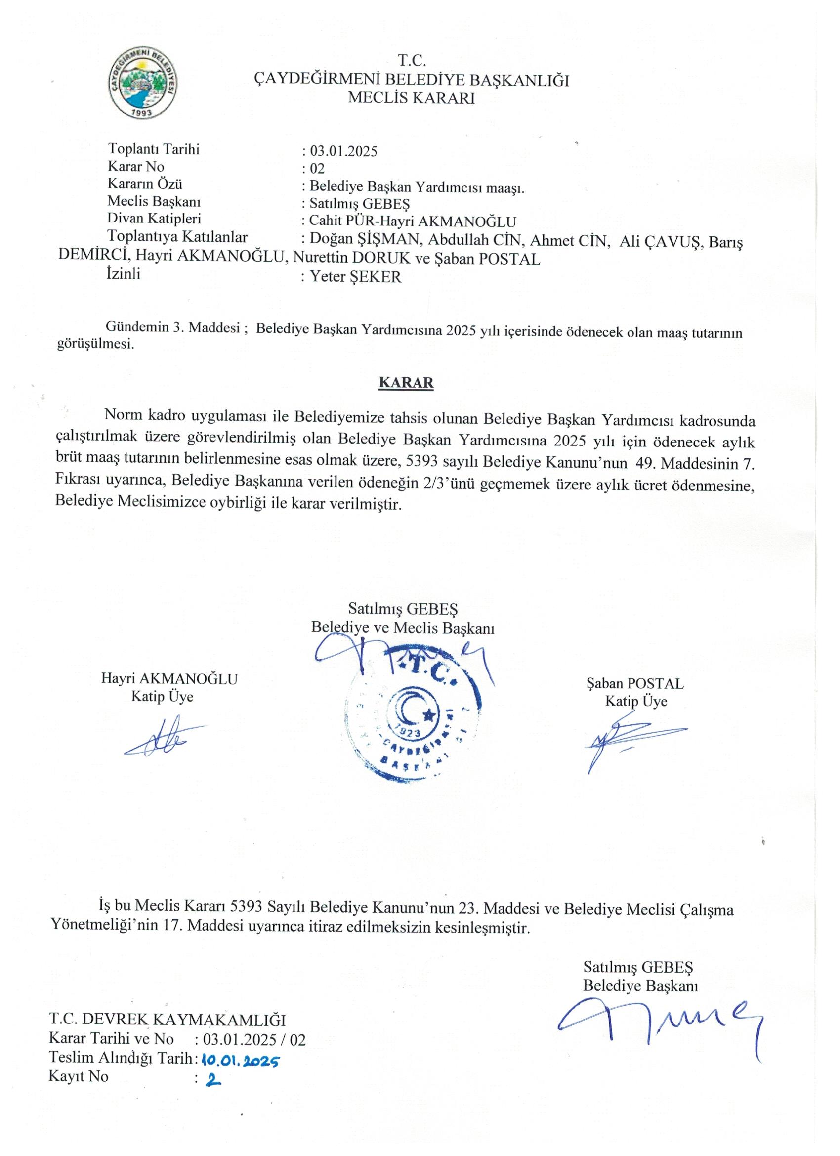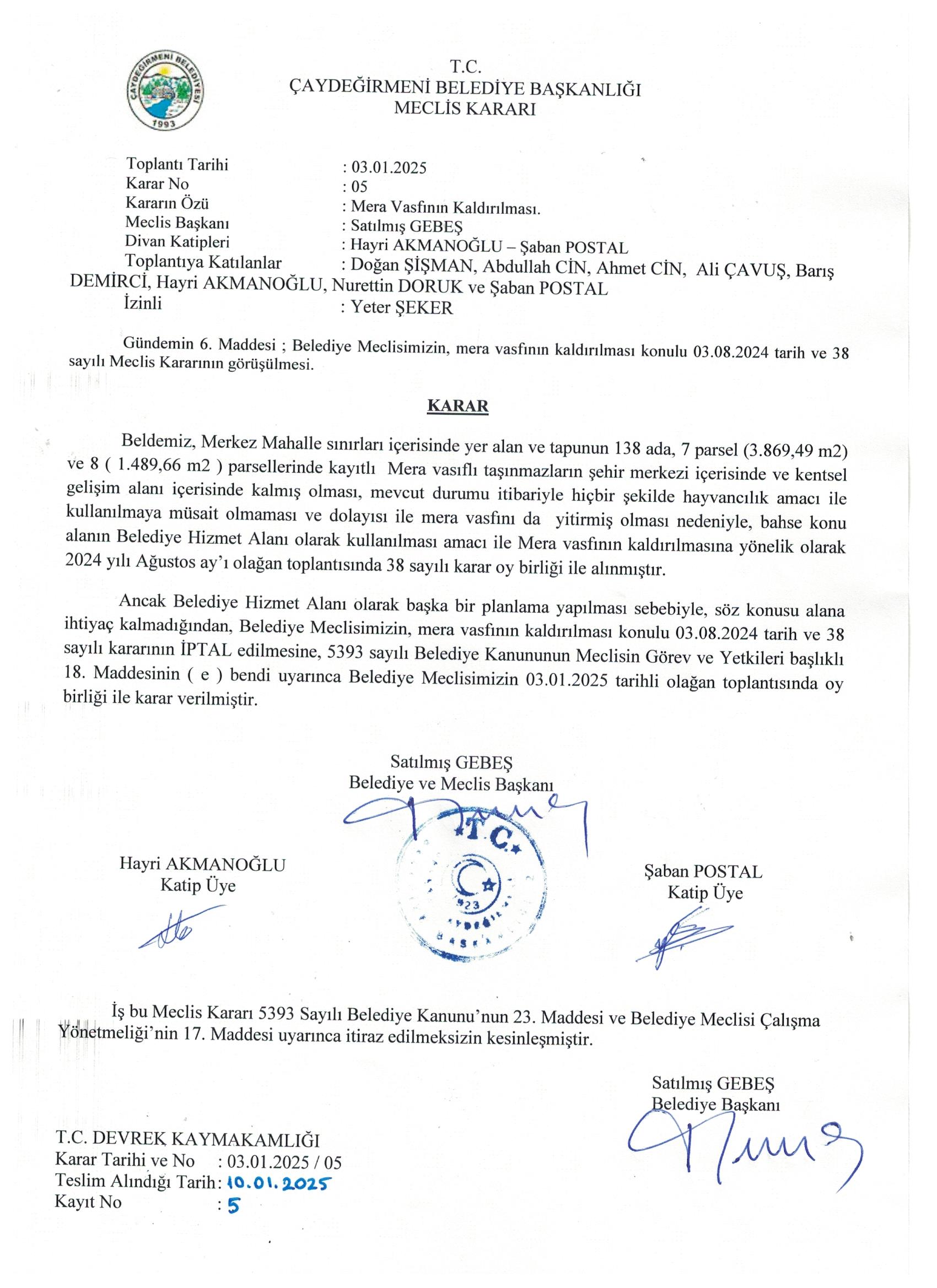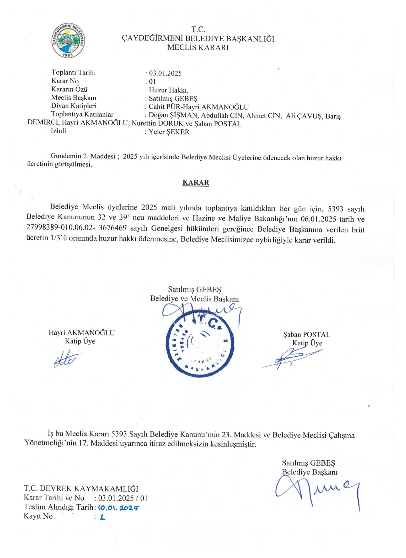 Anasayfa Meclis Kararları OCAK 2025 MECLİS KARARLARI